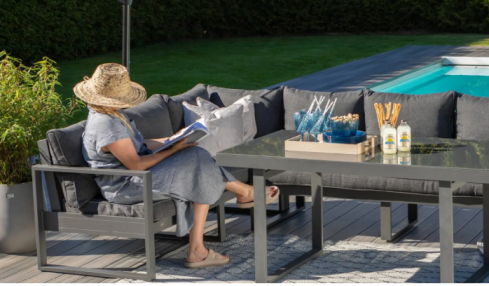 Bel-Air-serien er en hagegruppe i antrasitt med solid rammekonstruksjon av 100% aluminium. Hagemøblene har et moderne design med behagelige kvalitetsputer. Bel-Air hjørnesofa Stor og...